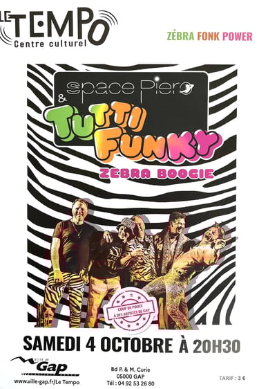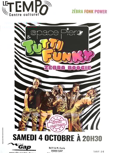 Le samedi 4 octobre 2025, la salle Le Tempo à Gap accueillera "Space Piero & The TuTTi FunKy", formation funk-rock psychédélique cuivrée née dans les Hautes-Alpes.